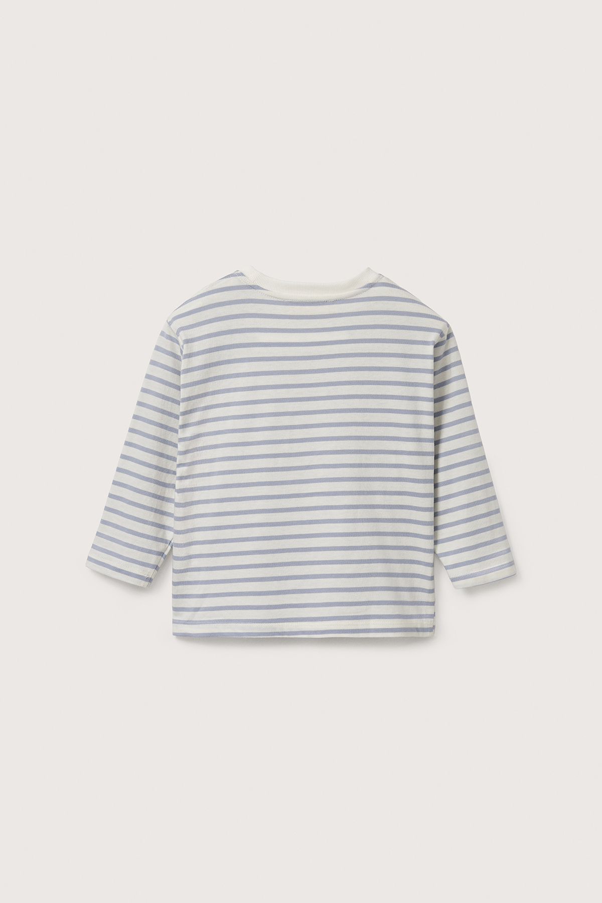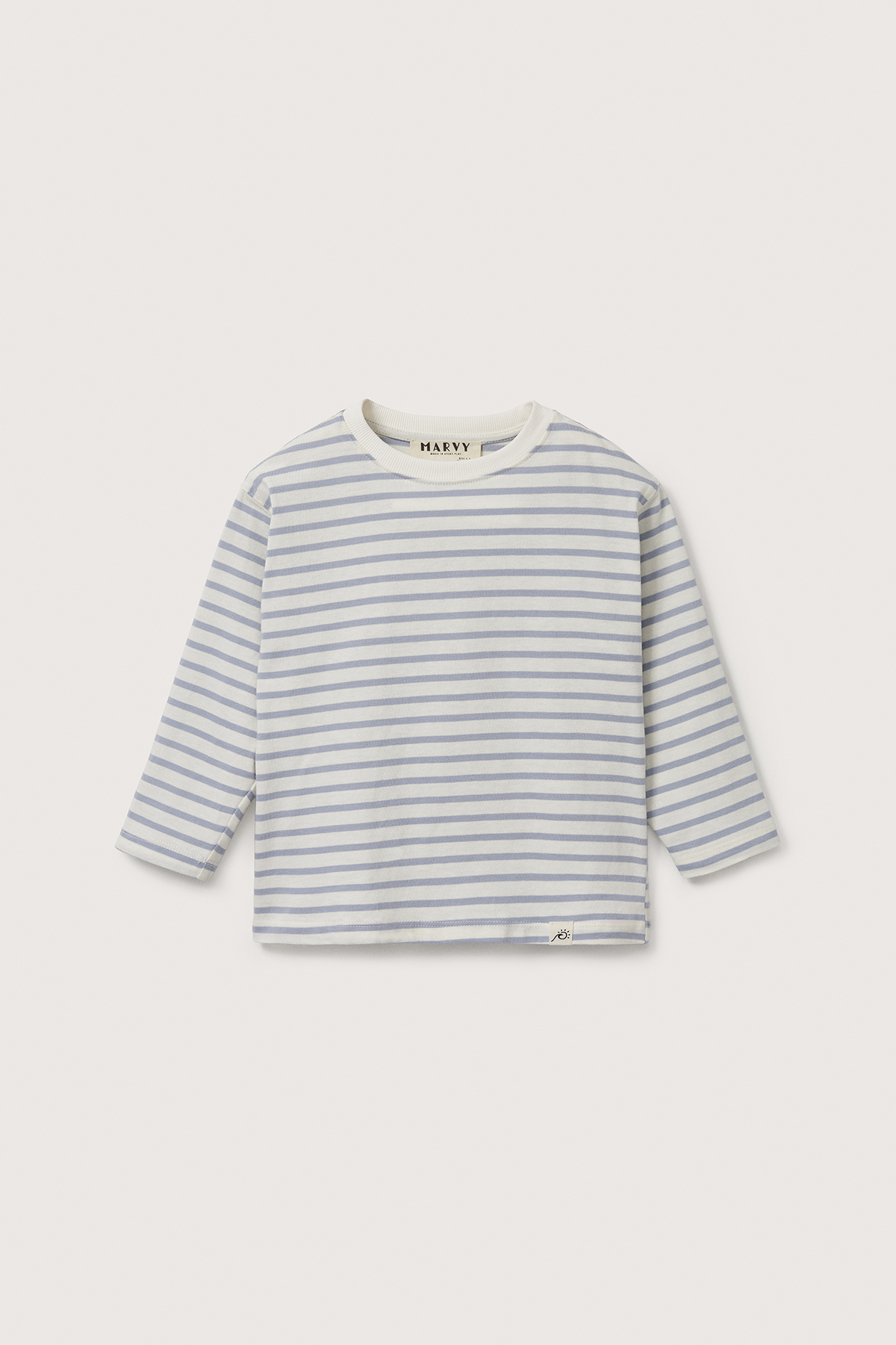 Notify me when its in stockWhite and blue striped long sleeve crew neck t-shirt with hem label detail, relaxed fit, 100% cotton fabric
