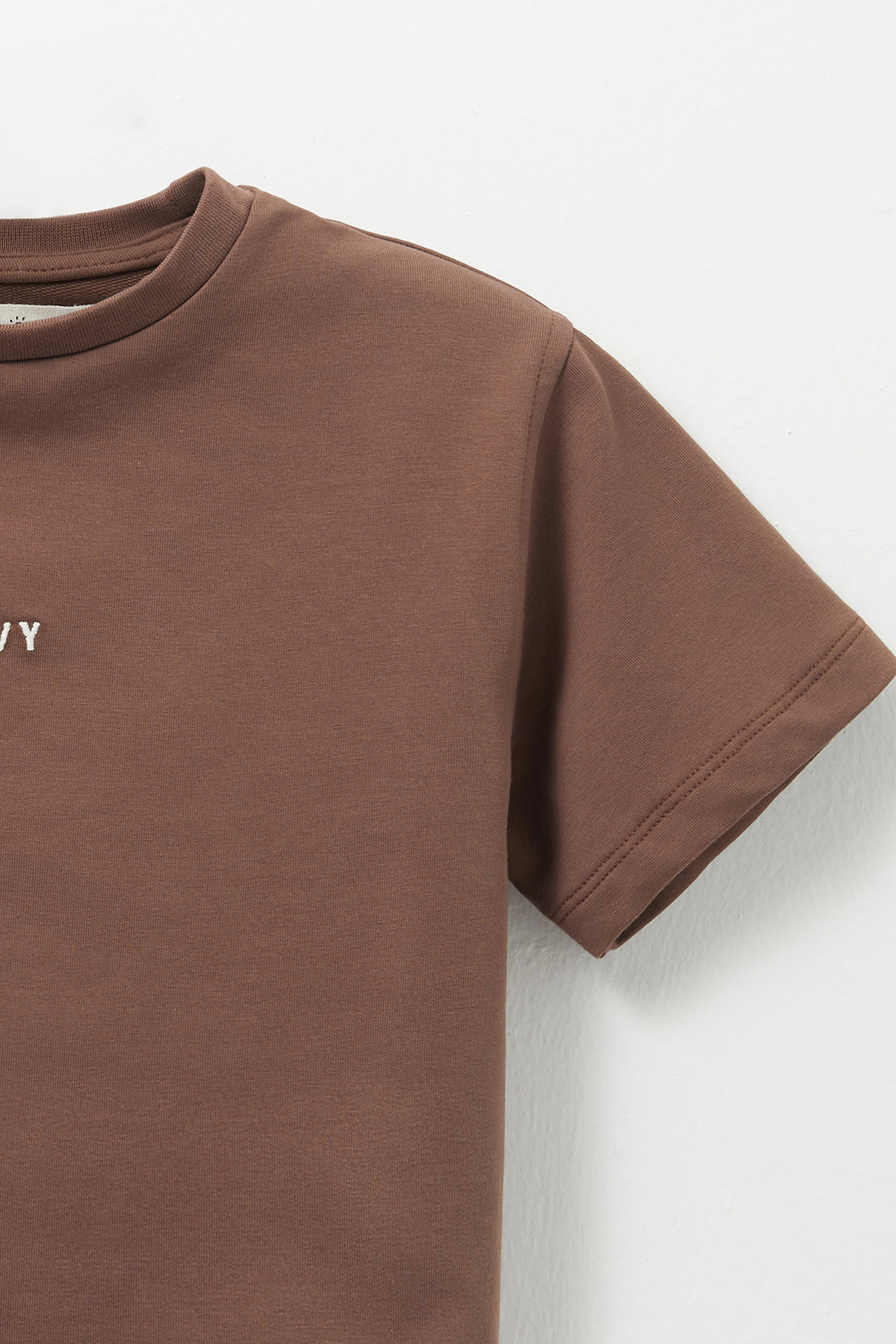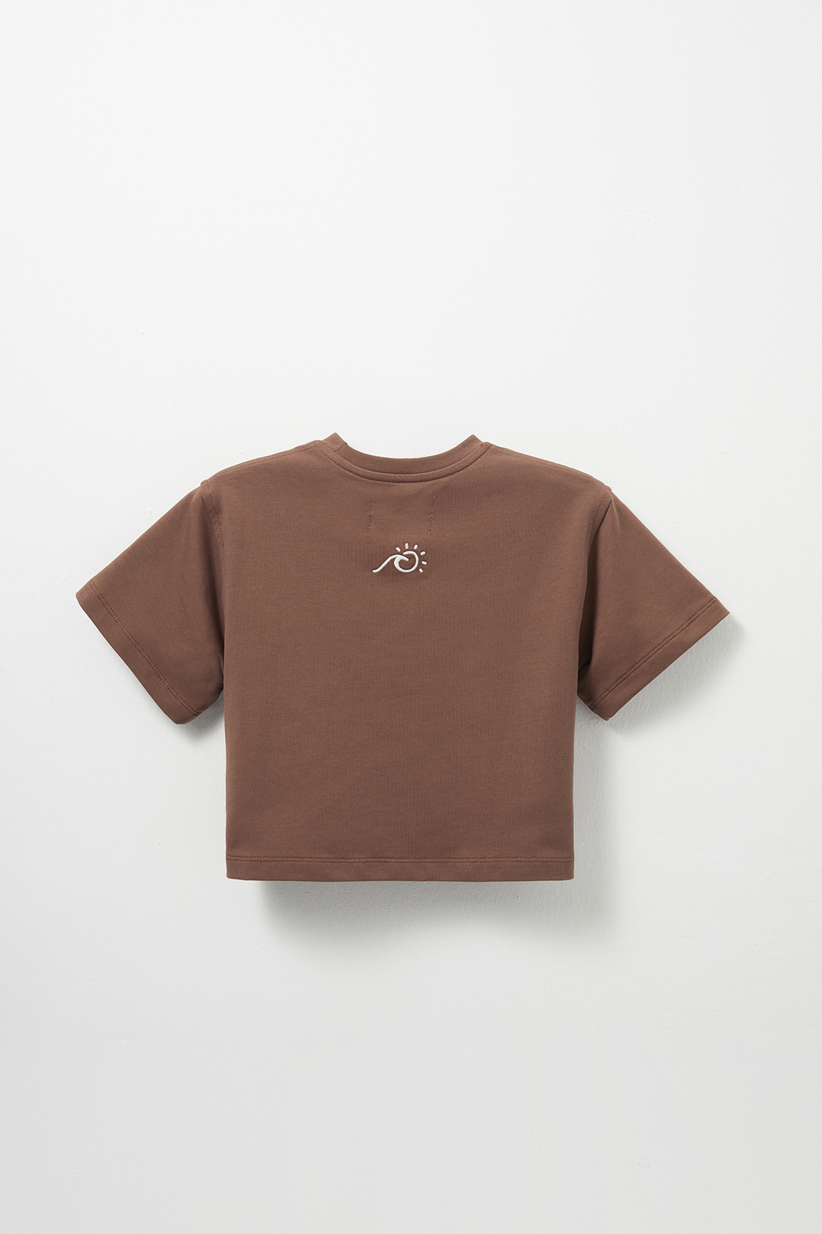 Notify me when its in stockBrown, relaxed fit, embroidered detail, short-sleeved, crew neck, stretchy cotton fabric, unisex kids' t-shirt.