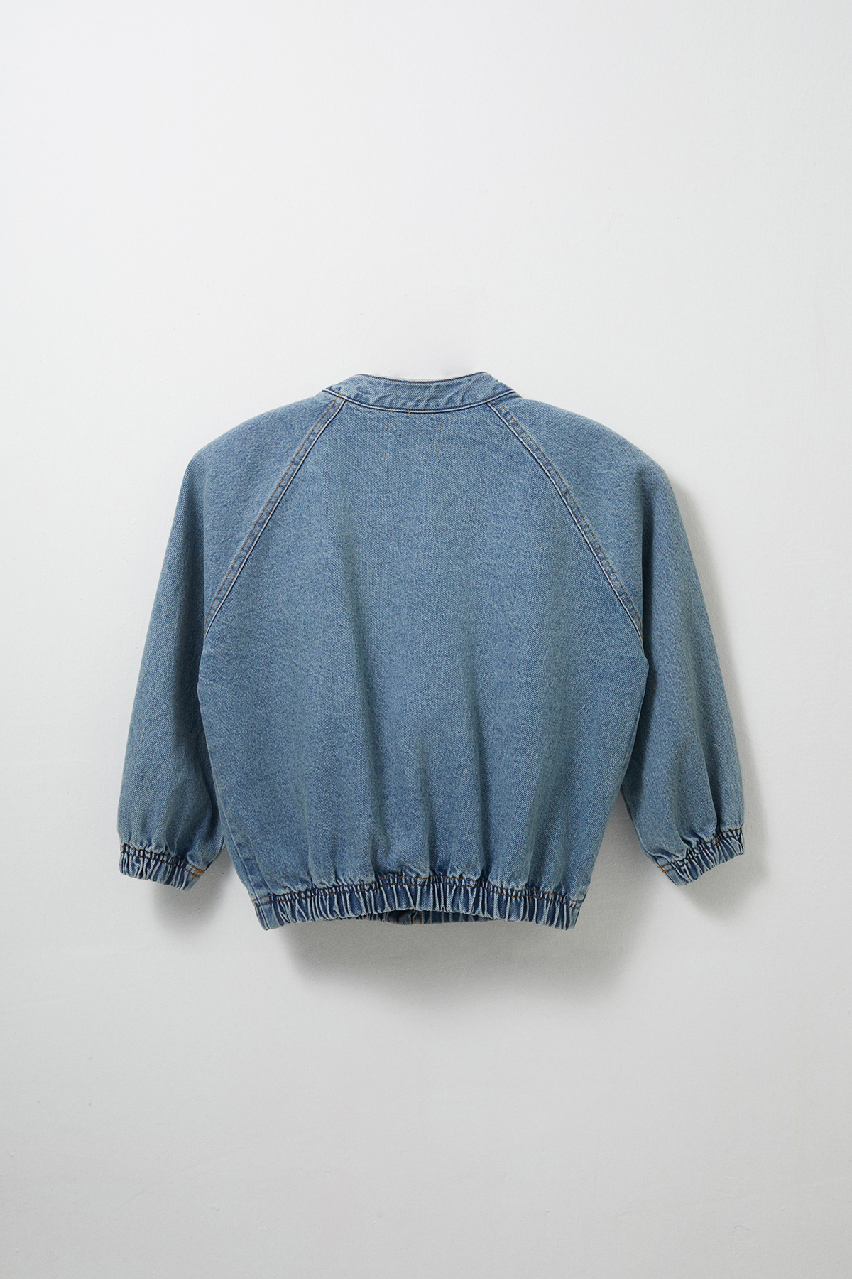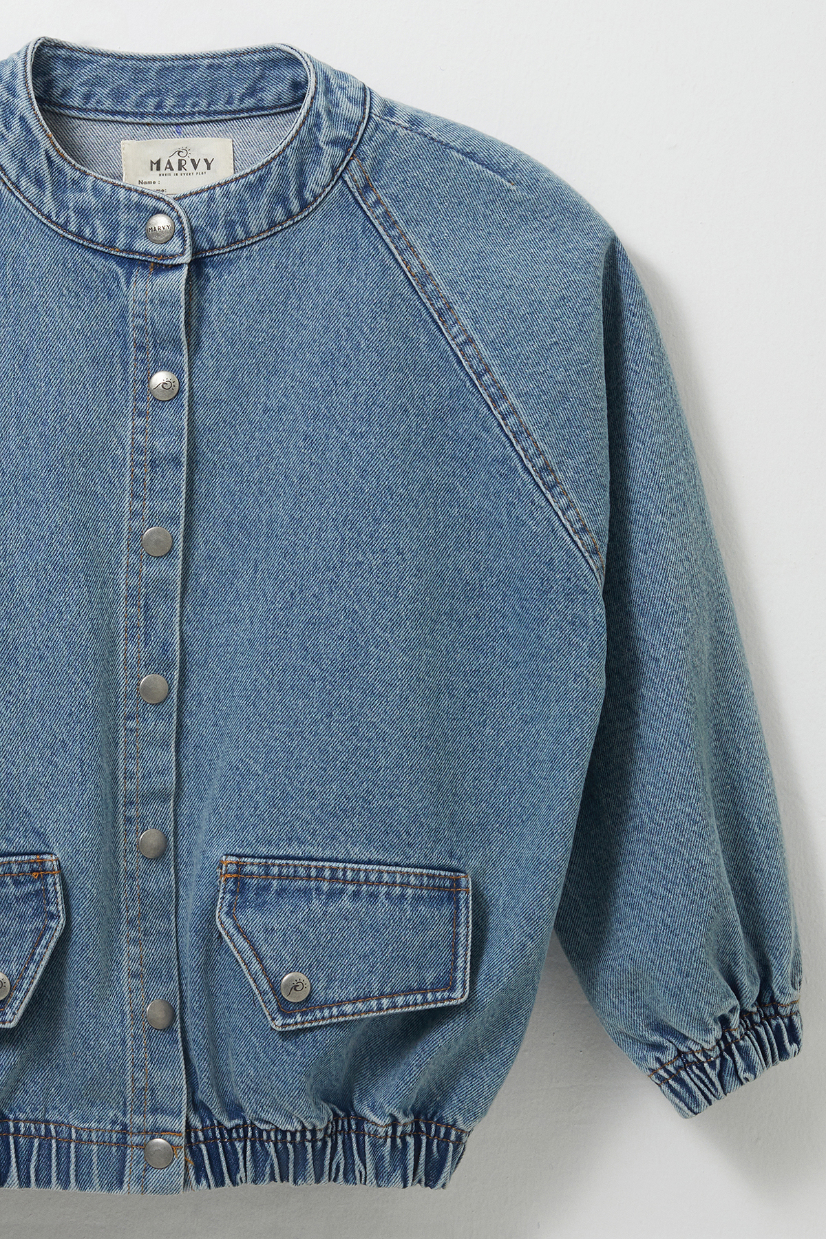 Gelince Haber VerAçık mavi, önden cepli, düğmeli, pamuk denim kumaş, unisex çocuk, bomber ceket.