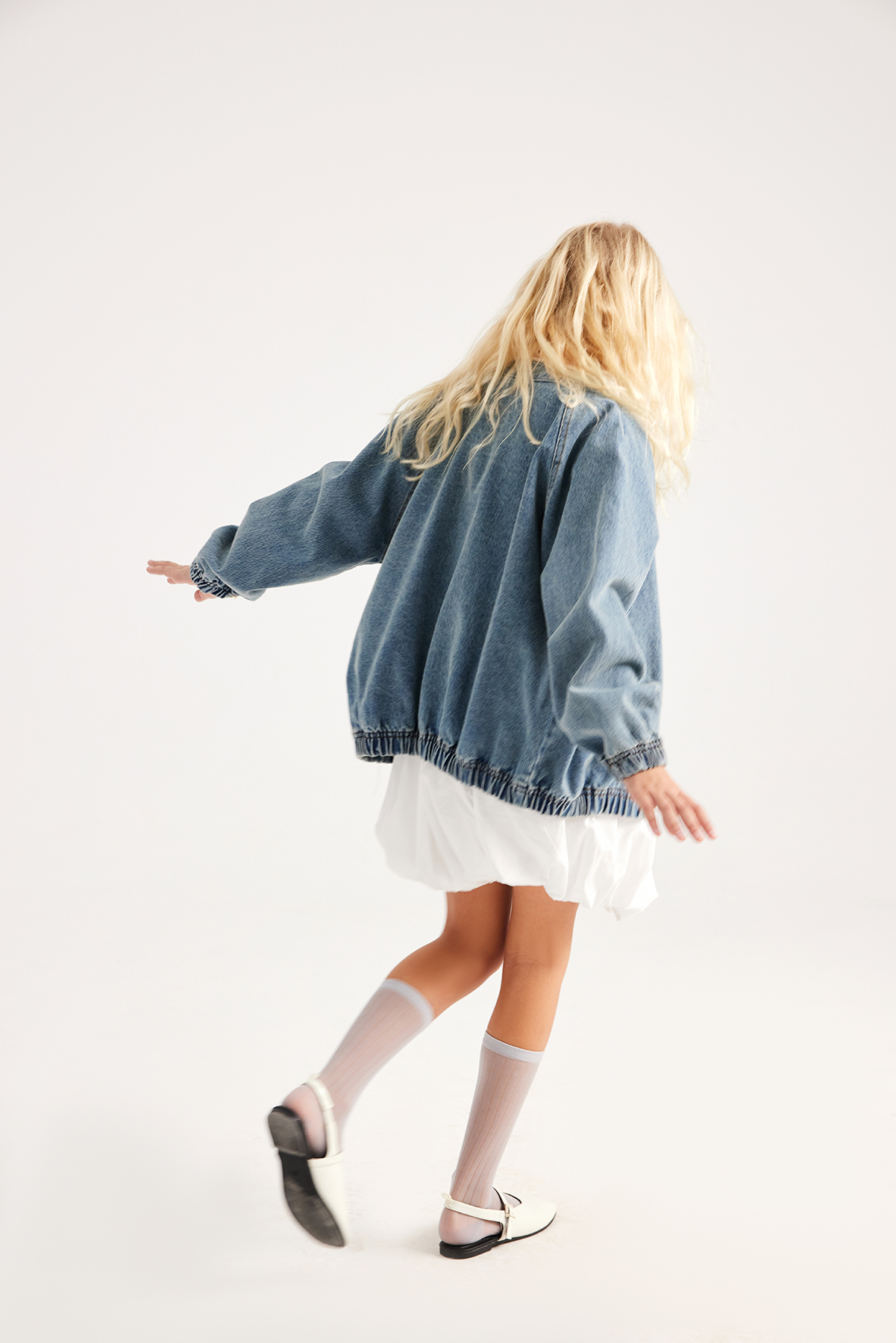 Şık ve rahat tasarımıyla öne çıkan bu unisex çocuk bomber ceket, dayanıklı ve nefes alabilen pamuk denim kumaşıyla gün boyu konfor sunar. Önden cepli yapısı pratik kullanım sağlarken, modern kesimiyle şık ve sportif bir görünüm kazandırır. Hafif yapısı sayesinde mevsim geçişlerinde ideal bir tercih olan bu ceket, hem günlük kullanımda hem de özel kombinlerde rahatlıkla kullanılabilir. Hem kız hem de erkek çocuklar için uygun olan bu bomber ceket, stil sahibi çocukların gardırobunda vazgeçilmez bir parça olmaya adaydır.
