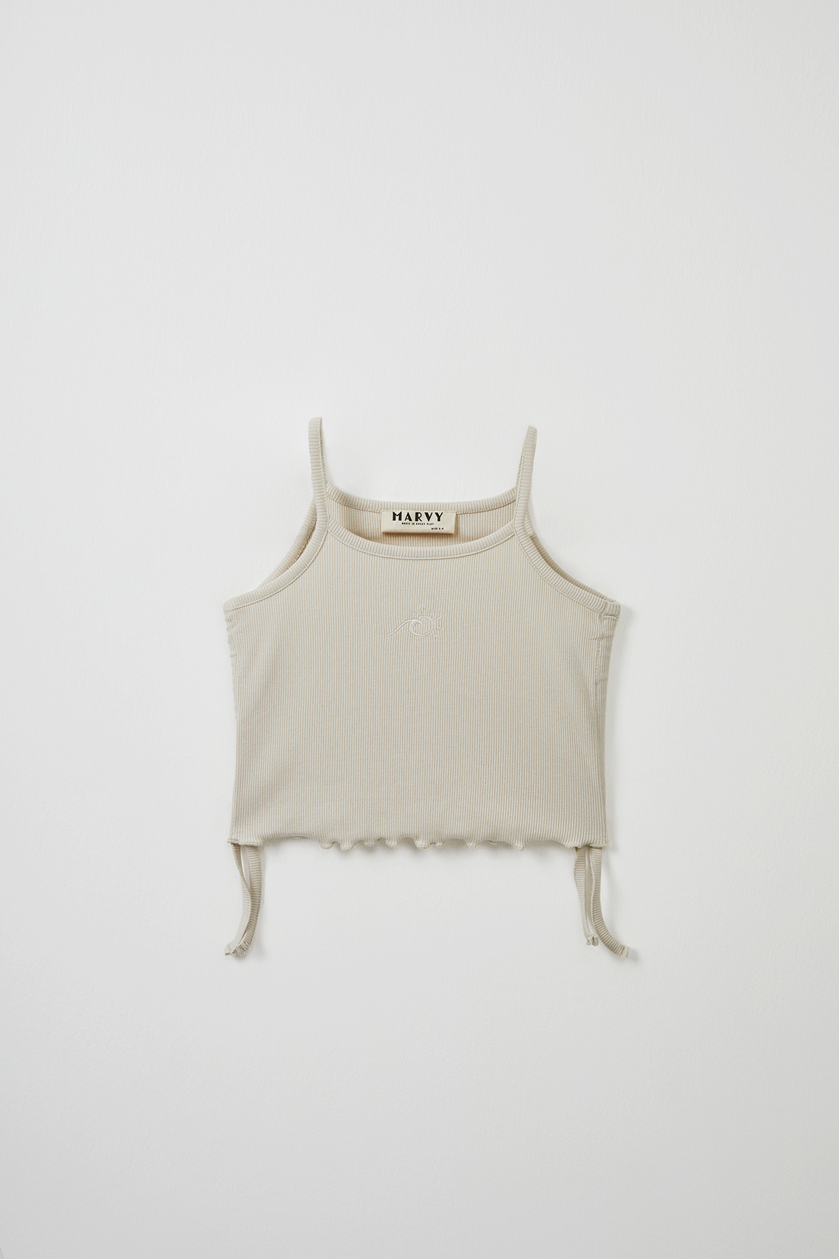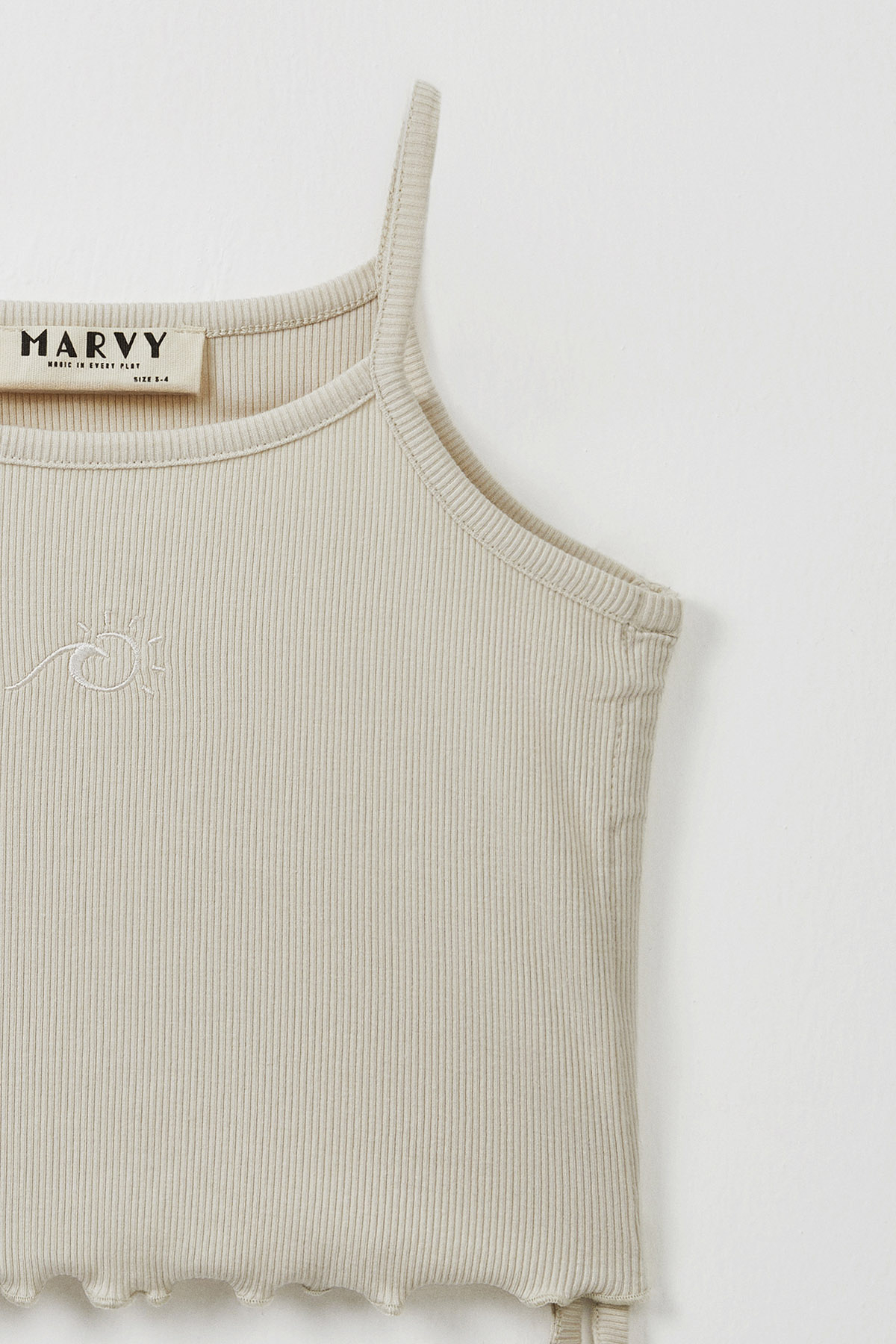 Gelince Haber VerEkru fitilli pamuk modal karışımlı likralı kumaştan askılı yanı büzgülü logo nakışlı tshirt kısa beli lastikli kız çocuk tayt şort.
