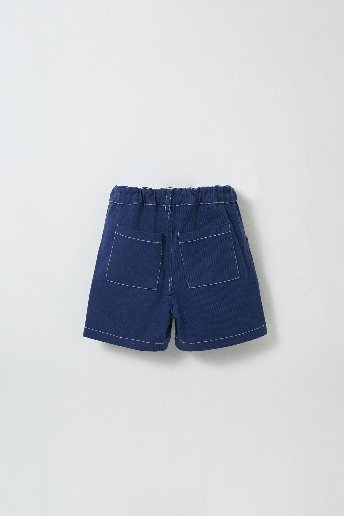 Combining comfort and style, these unisex children's shorts stand out with their modern details. Made from durable and breathable cotton fabric, they provide all-day comfort, while the contrast topstitching adds a dynamic look. The front and back pockets offer both a stylish touch and practical use, while the belted waist and elasticated back ensure a perfect fit and flexibility. Ideal for both boys and girls, these trendy shorts become an essential piece for everyday outfits.