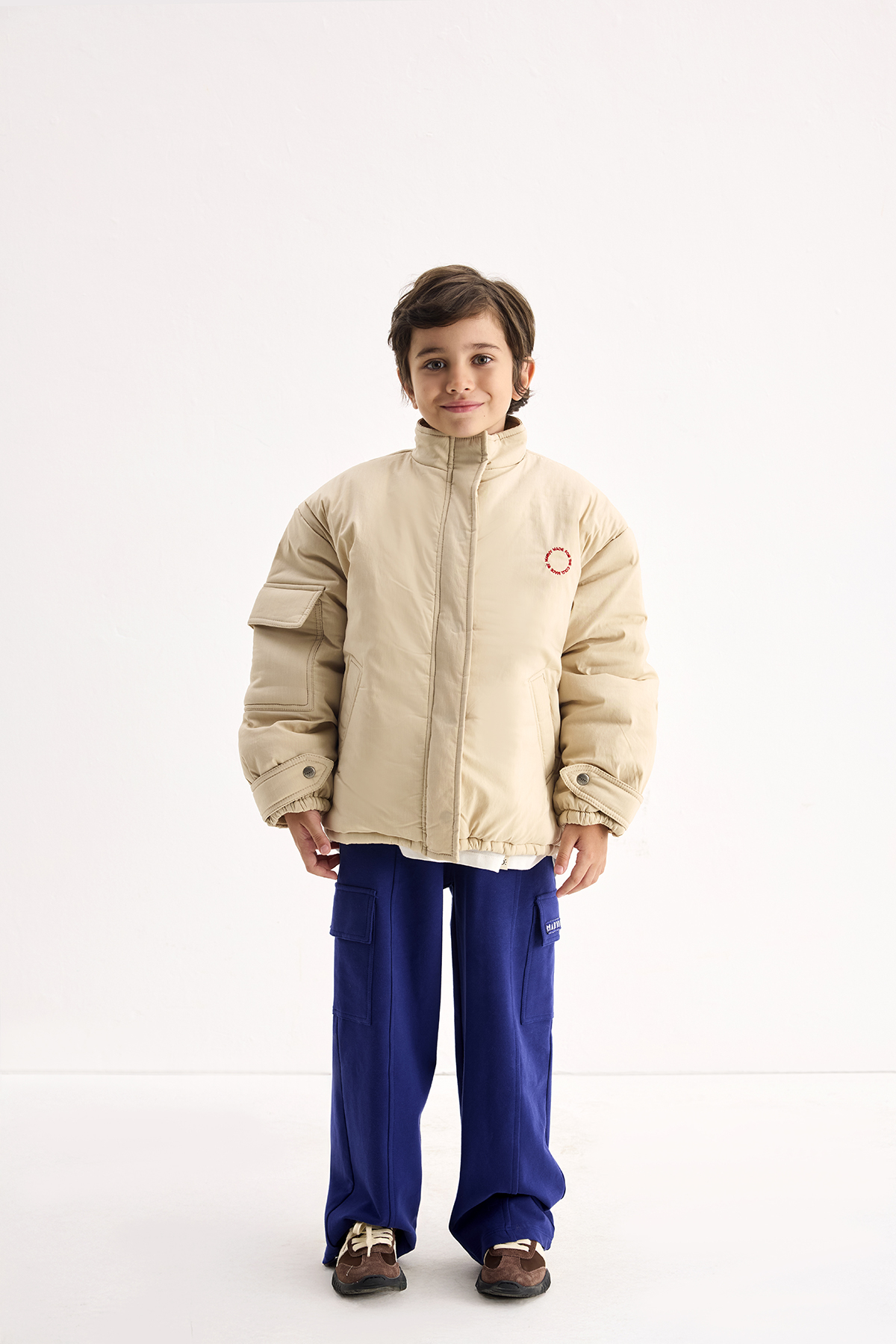 Modern ve rahat tasarımıyla öne çıkan bu lacivert pantolon, kargo cepleriyle hem işlevsellik hem de tarz sunar. Beli lastikli ve bağlama detaylı yapısı pratik kullanım sağlarken, cep kapağı üzerindeki nakış detayı modele özgün bir şıklık katar. Önden dikişli geniş kesim tasarımı sayesinde çocuklara gün boyu hareket özgürlüğü sunan bu pantolon, likralı pamuk kumaşıyla esnek, yumuşak ve nefes alabilir bir yapıdadır. Günlük kullanımda ve özel anlarda stil sahibi bir tercih olacaktır.