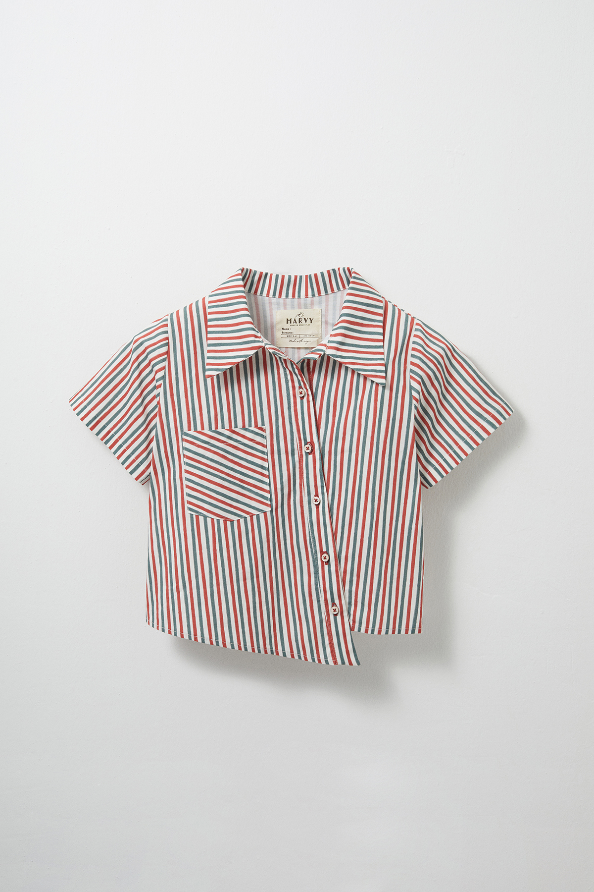 Notify me when its in stockRed-Green Striped, Front Buttoned, Pocketed, Short Sleeved, Stretch Cotton Fabric, Asymmetrical Cut Shirt.