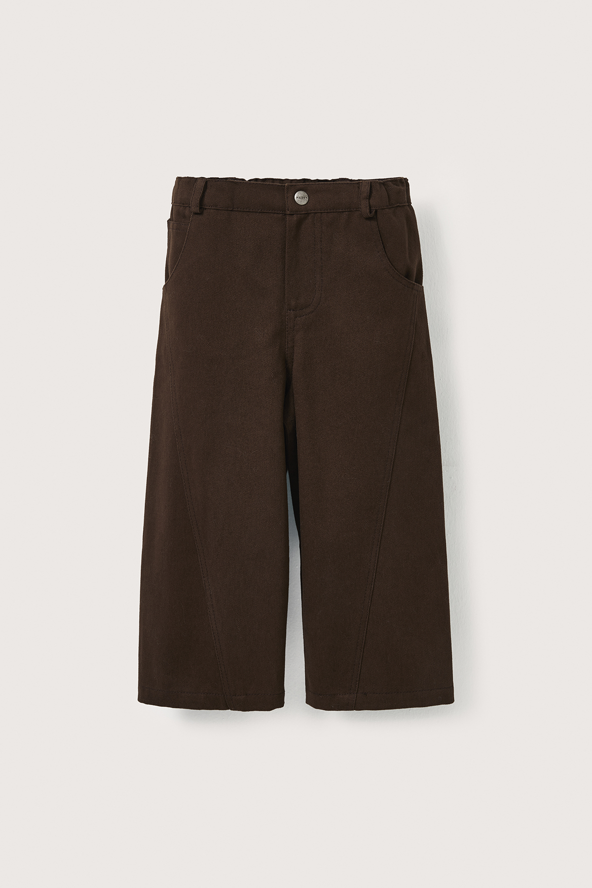 Gelince Haber VerKahverengi beli lastikli kemer köprülü geniş kesim verev punto dikiş detaylı cepli pamuk kumaştan çocuk pantolon.
