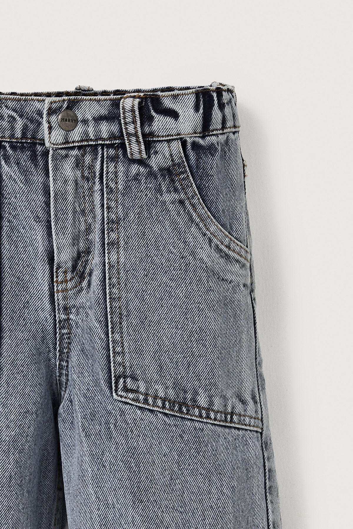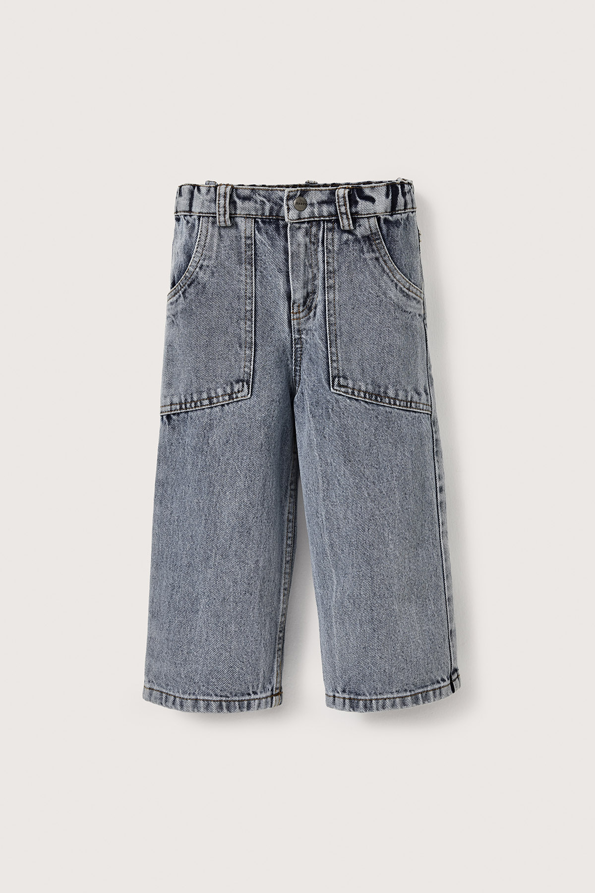 Açık mavi punto dikişli pamuk denim çocuk pantolon, modern ve fonksiyonel tasarımıyla öne çıkıyor. Yama ve kargo cepli modeli, ekstra depolama alanı sunarken cep kapaklarındaki yırtık detaylarıyla cool bir görünüm kazandırır. Beli lastikli ve kemer köprülü yapısı sayesinde rahat kullanım sağlar. Dayanıklı pamuk denim kumaşı, hareket özgürlüğü ve uzun ömürlü kullanım imkânı sunar. Günlük kombinlere enerjik, stil sahibi bir dokunuş katan bu pantolon, gardırobunun vazgeçilmez parçalarından biri olacak.