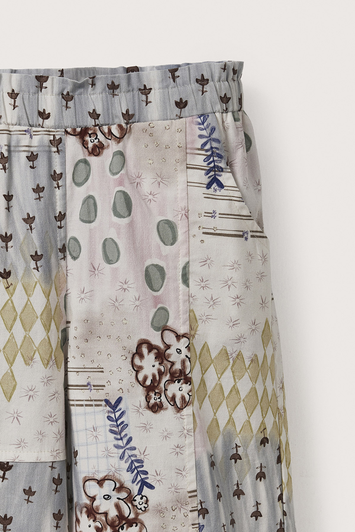 With its colorful patch patterns, this pant offers an energetic style and a relaxed fit that ensures freedom of movement throughout the day. The elastic waistband allows for easy wear, while the pockets add both a stylish and functional touch. Made from stretch cotton fabric, it is soft, breathable, and comfortable, making it the perfect blend of style and practicality for everyday wear.
