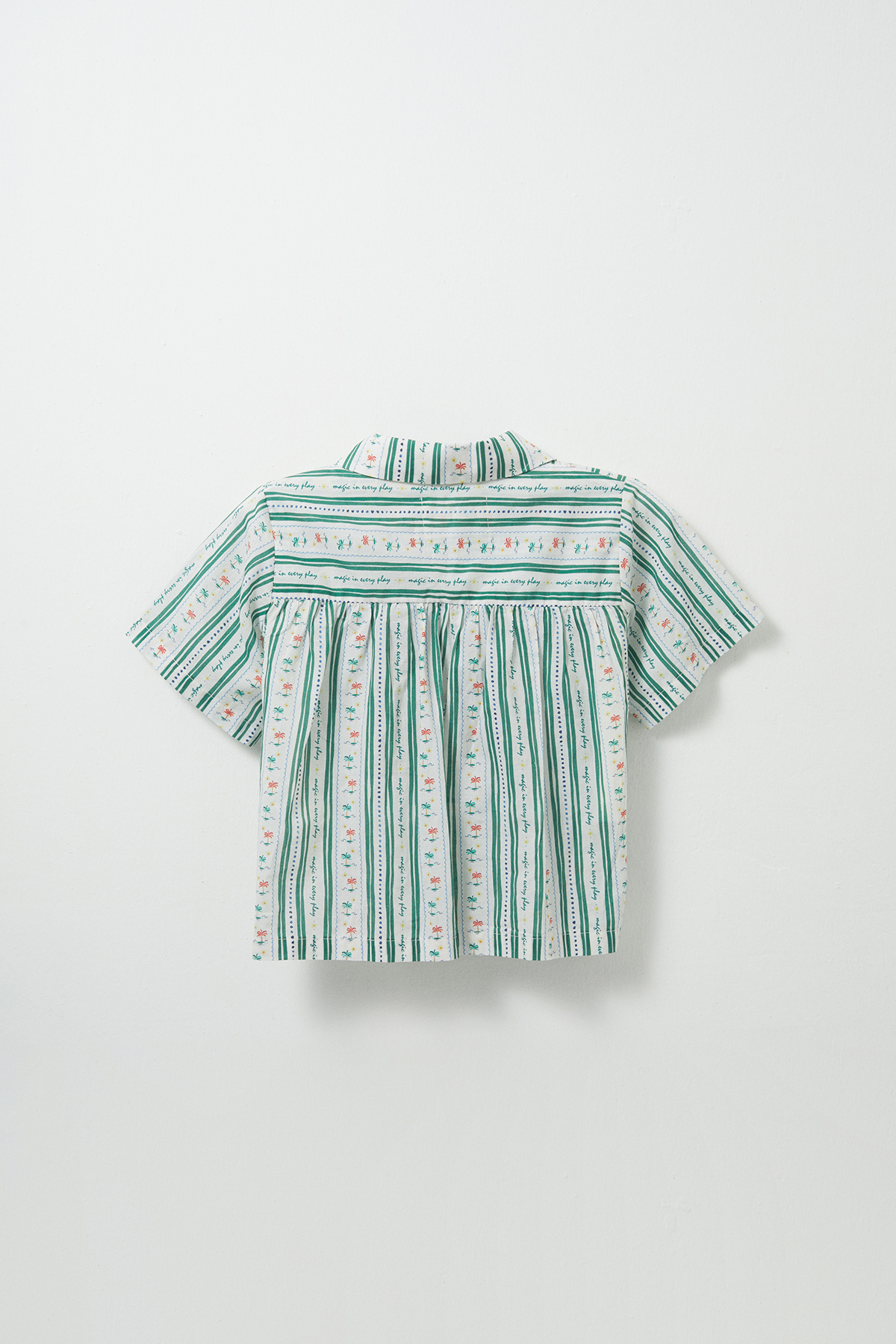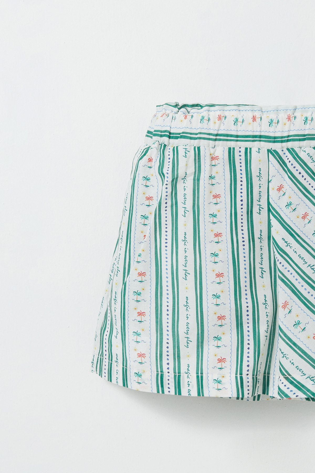Notify me when its in stockGreen Tropical-Stripe Patterned Short Sleeve Shirt and Elastic Waist Cotton Fabric Girls' Shorts Set