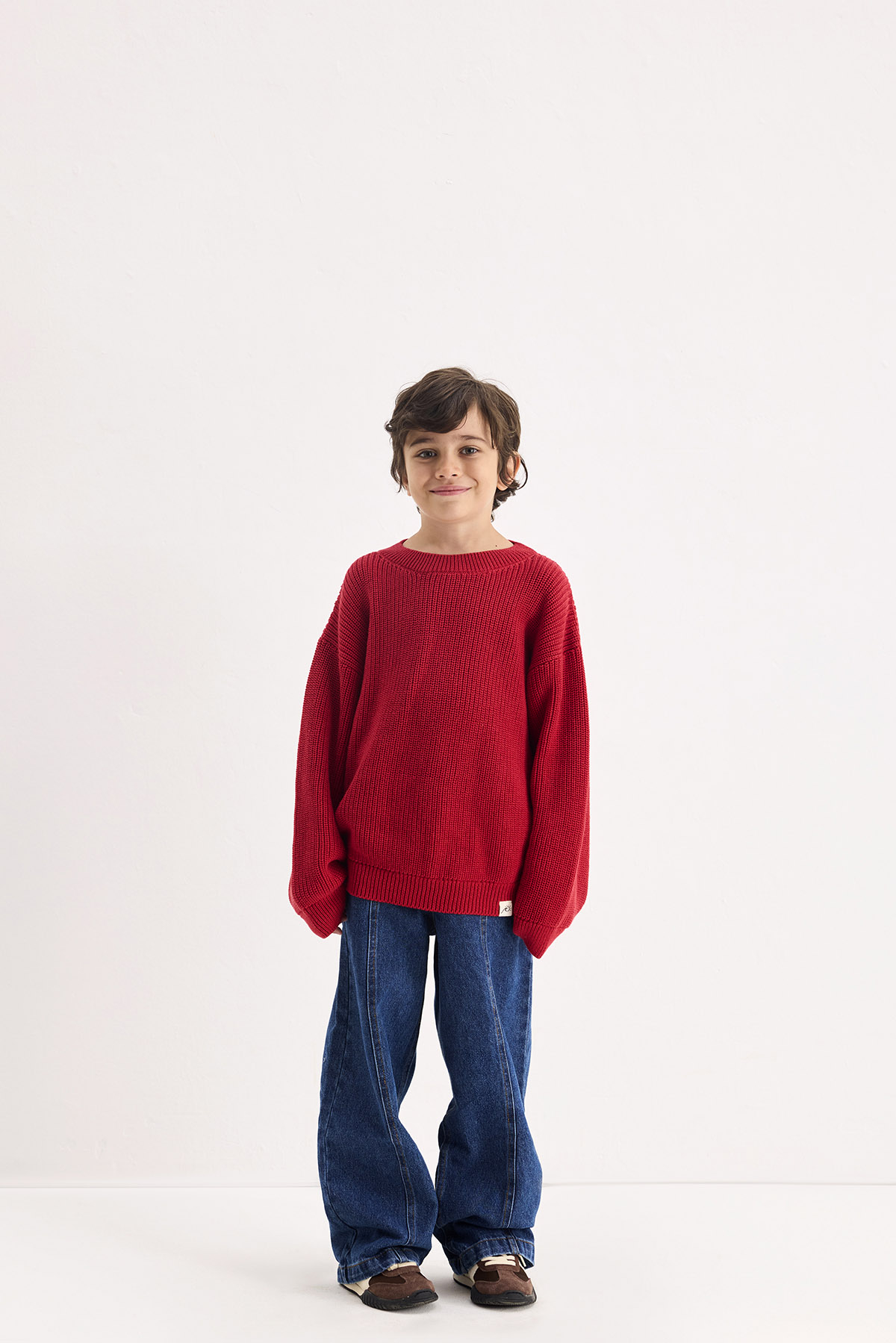 Şık ve rahat tasarımıyla öne çıkan bu kırmızı çocuk kazak, bisiklet yaka ve geniş kesimi sayesinde gün boyu özgür hareket imkânı sunar. Tırnak etiket detayı modele özgün bir stil katar. %100 pamuk örgü kumaşıyla yumuşak, nefes alabilir ve konforlu bir yapıya sahip olan bu kazak, günlük kombinlerde hem şıklığı hem de rahatlığı bir araya getirir.