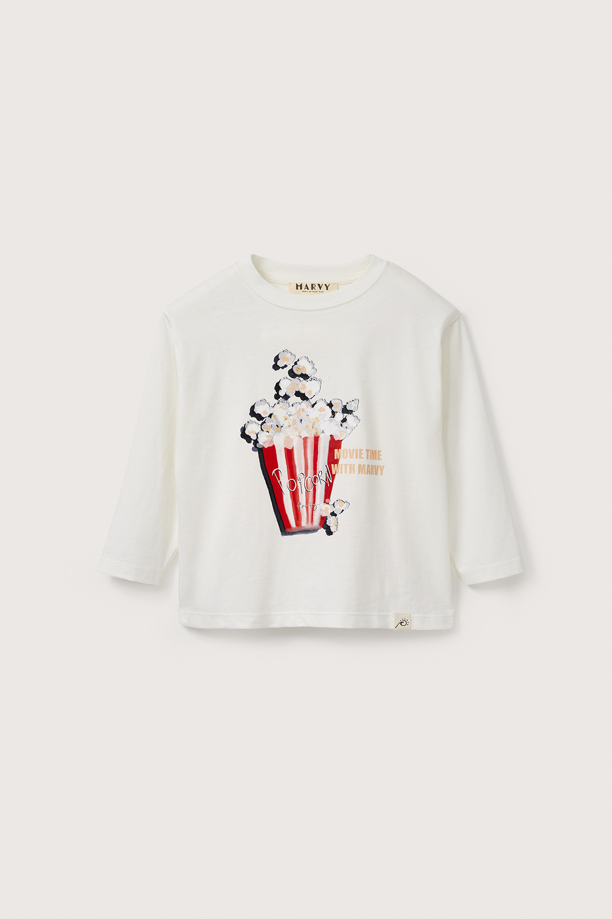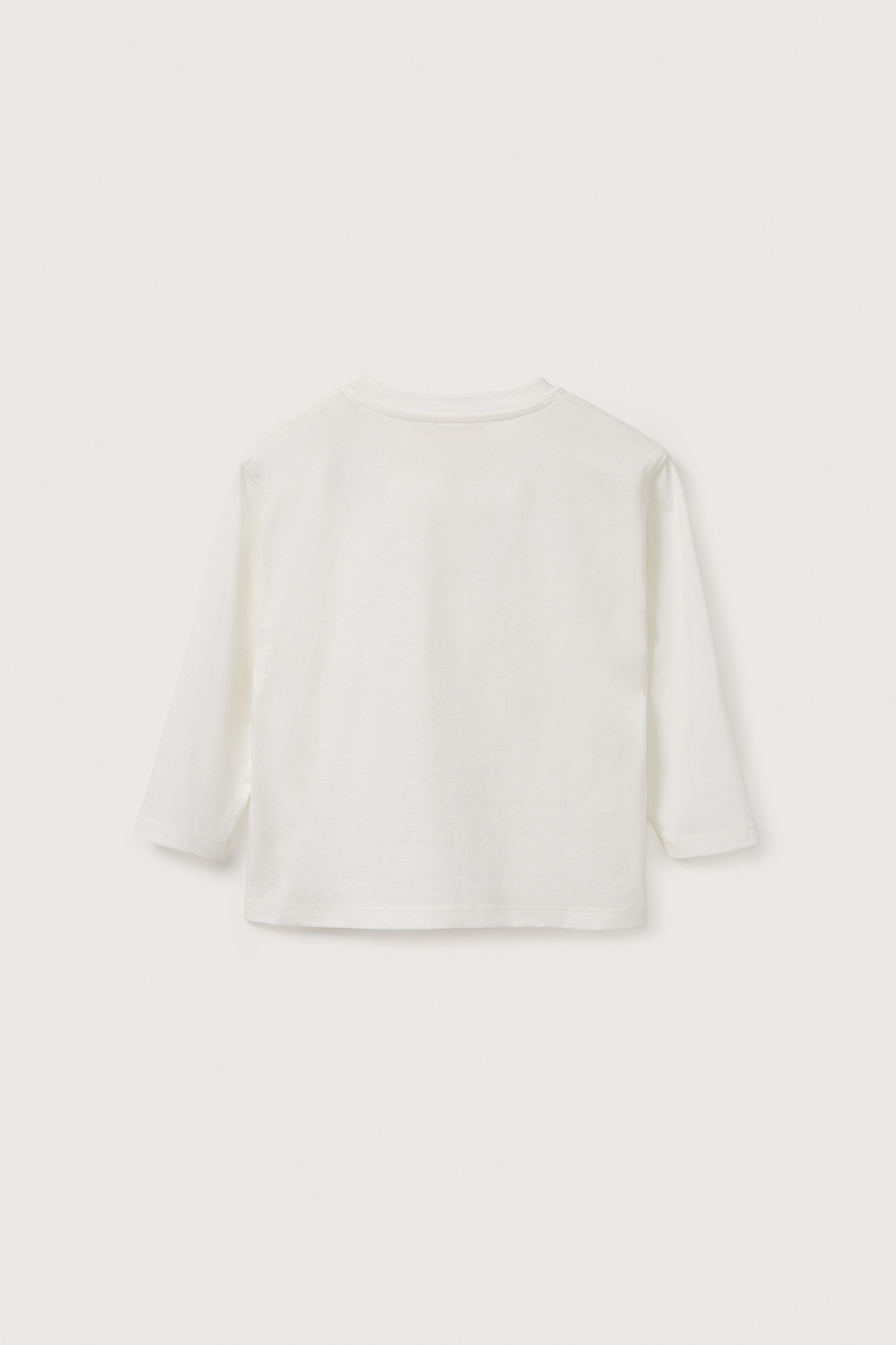 Gelince Haber VerBeyaz önü dijital baskılı uzun kollu bisiklet yaka eteği tırnak etiket detaylı geniş kesim %100 pamuk kumaştan çocuk tişört