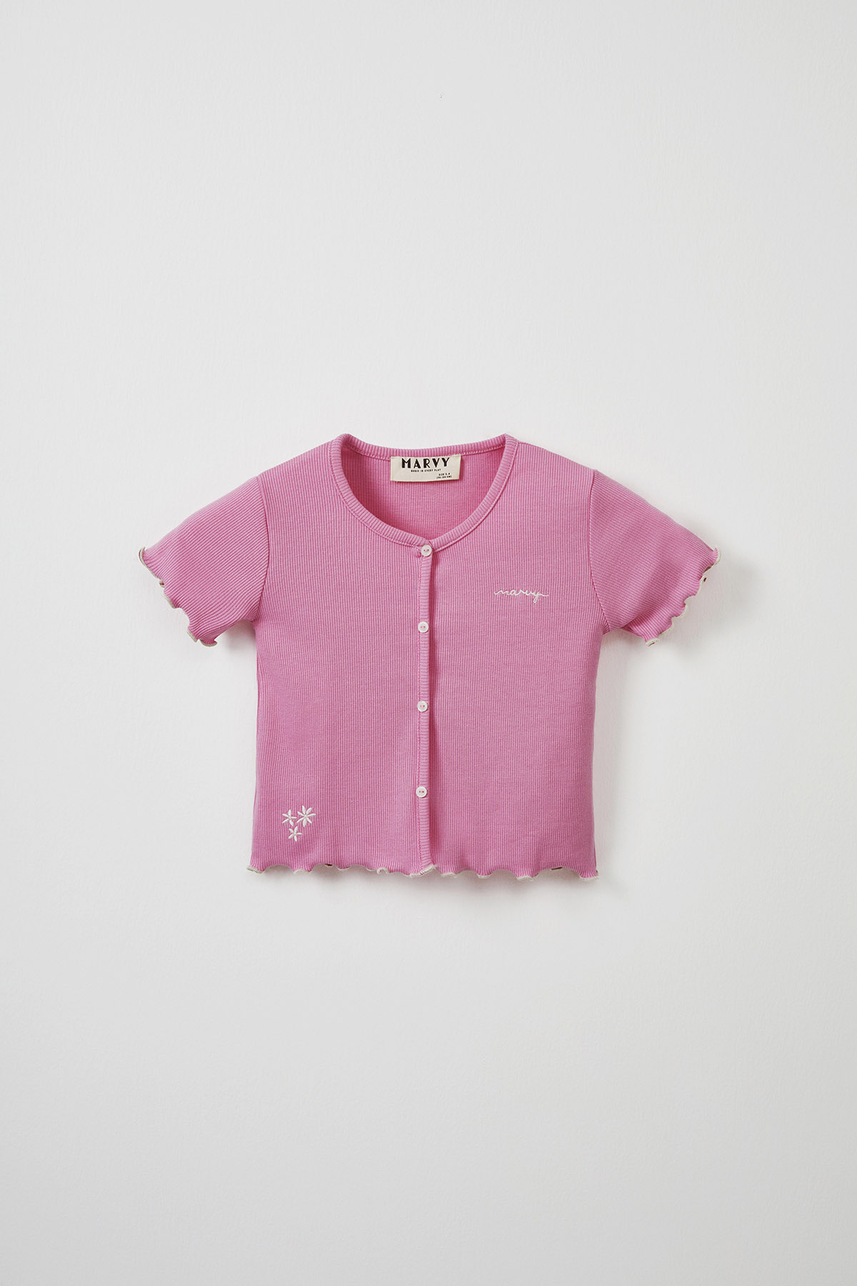 Notify me when its in stockThis elegant two-piece girls’ outfit in pink combines comfort and charm. Made from a ribbed cotton-modal blend with added stretch, the short-sleeved top features a button-down front and delicate floral embroidery for a sweet, timeless touch. Its flexible structure ensures ease of movement throughout the day. The flared leggings with a fashionable bell-bottom cut add a trendy flair while offering exceptional comfort. Perfect for both everyday wear and special occasions, this set is a stylish staple for every little girl’s wardrobe.