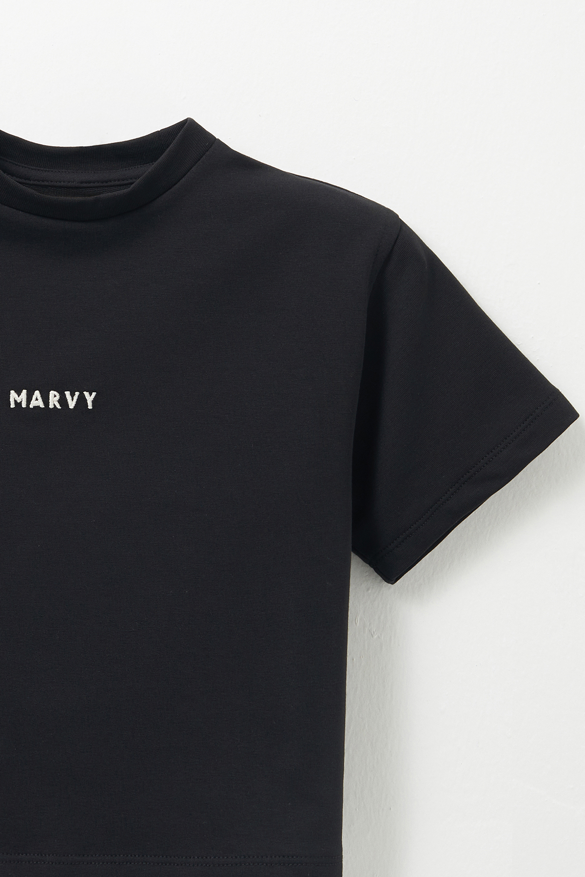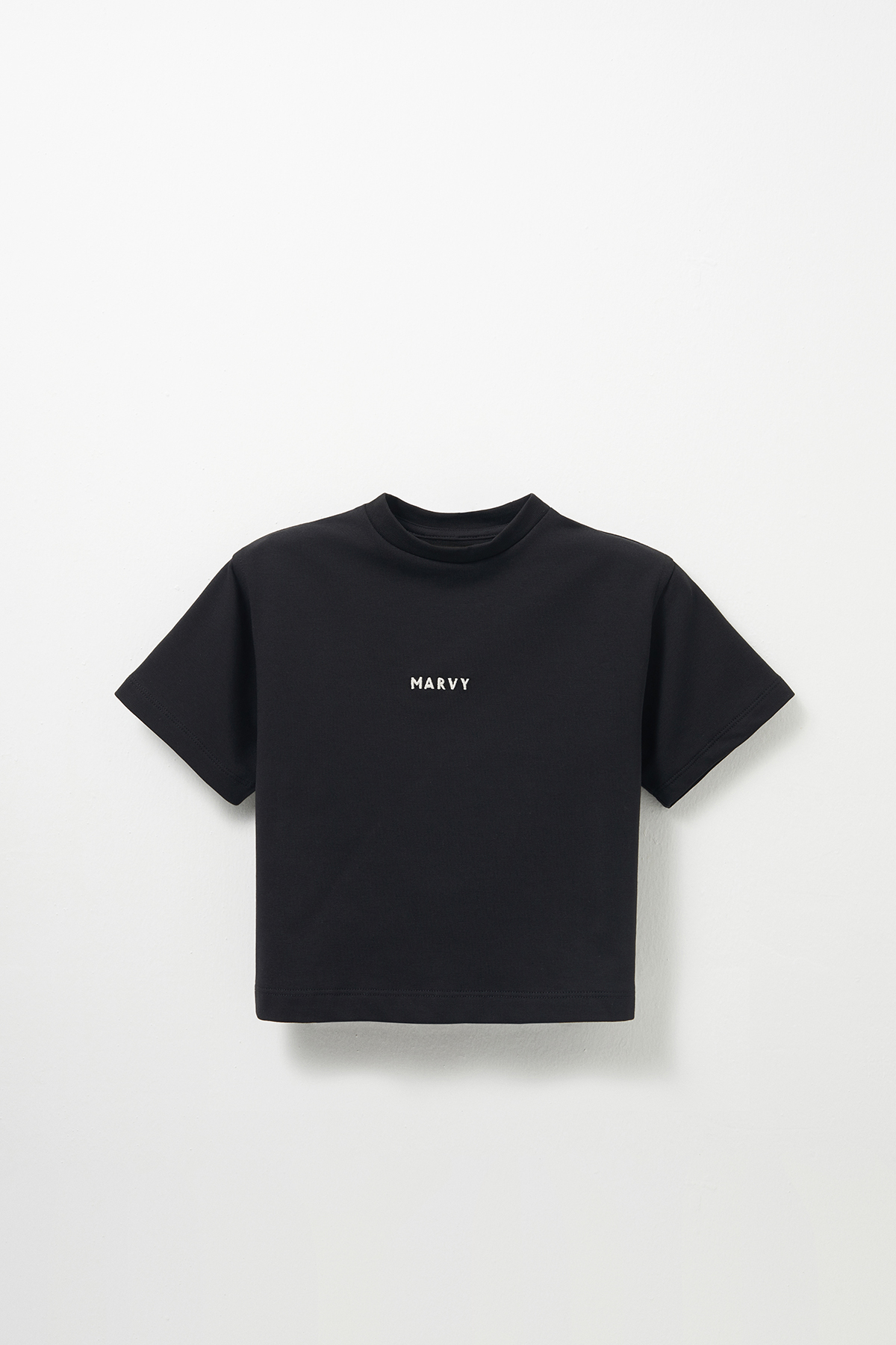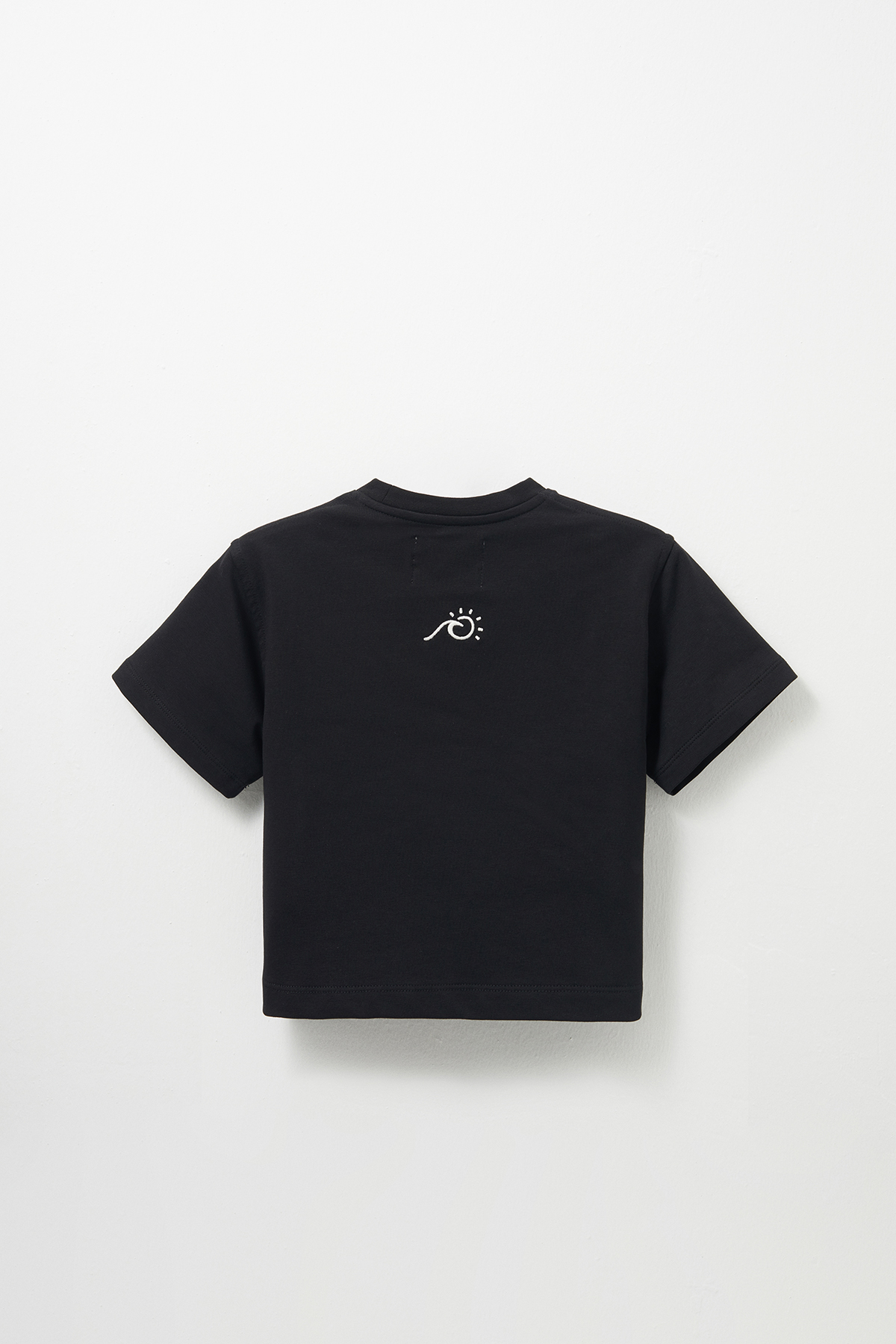 Notify me when its in stockBlack, oversize, logo embroidery detail, short-sleeved, crew neck, stretch cotton fabric, unisex T-shirt.