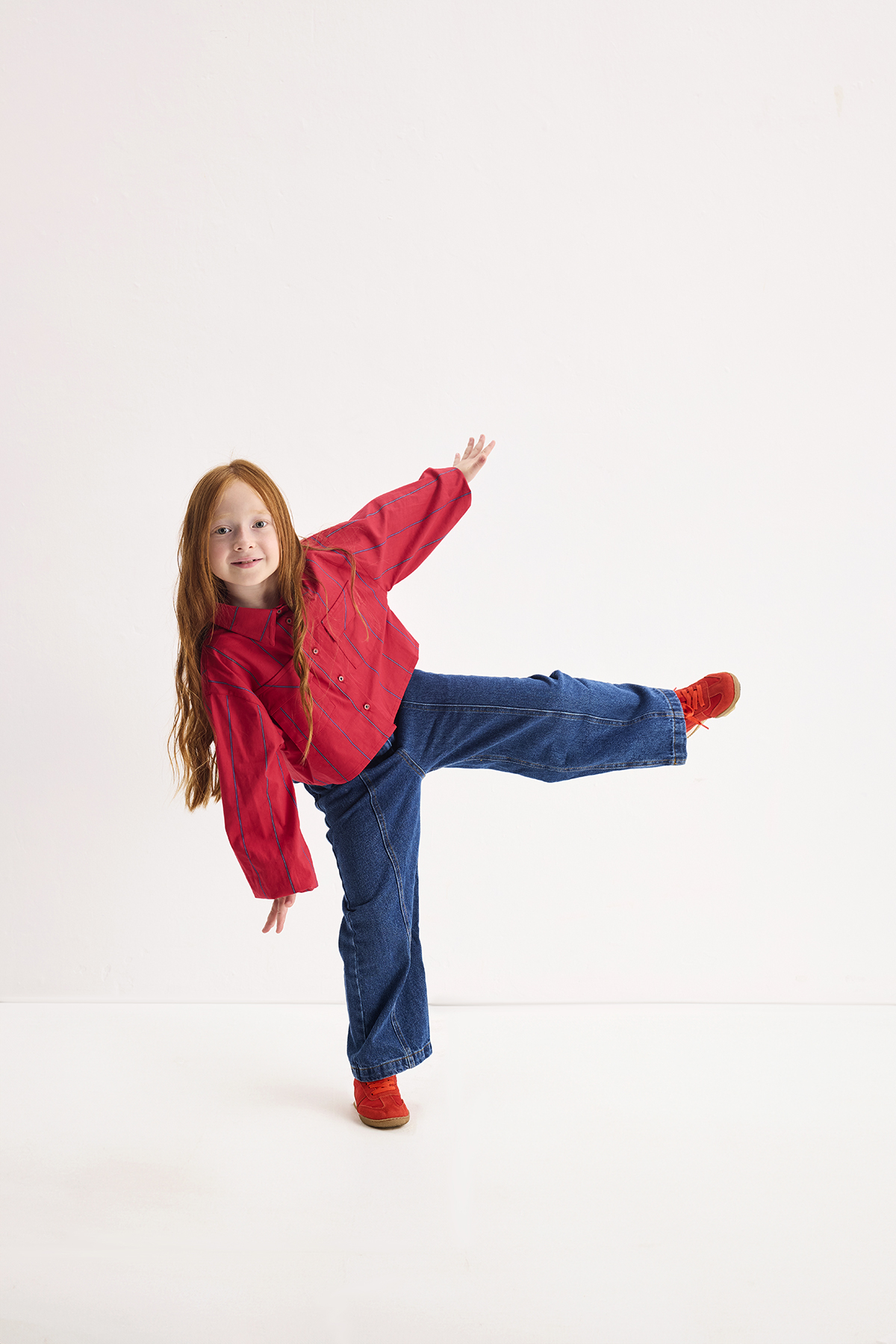 Kırmızı çizgili deseniyle dikkat çeken bu kız çocuk mini gömlek, modern ve enerjik bir görünüm sunar. Likralı pamuk kumaşı sayesinde esnek ve rahat bir kullanım sağlarken, manşetleri lastikli tasarımı hareket kolaylığı sunar. Ön kapaklı cepleri hem işlevsel hem de şık bir detay olarak öne çıkar. Günlük kombinlerde rahatlıkla kullanılabilecek bu mini gömlek, çocukların stiline dinamik bir dokunuş katıyor.
