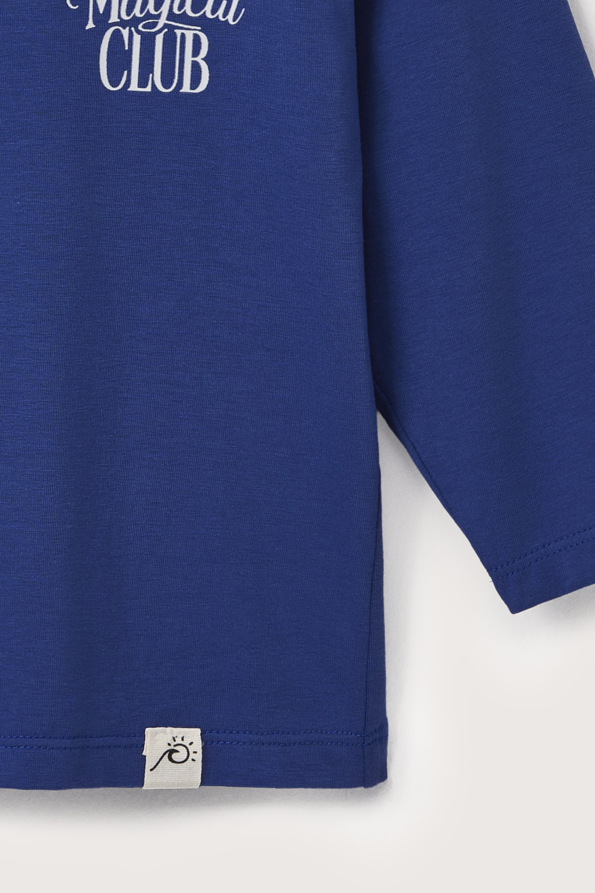 Gelince Haber VerSaks uzun kollu düşük omuzlu bisiklet yaka önü slogan baskılı tırnak etiket detaylı geniş kesim likralı pamuk kumaştan çocuk t-shirt.
