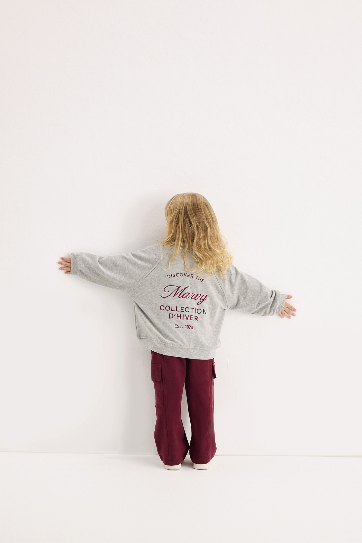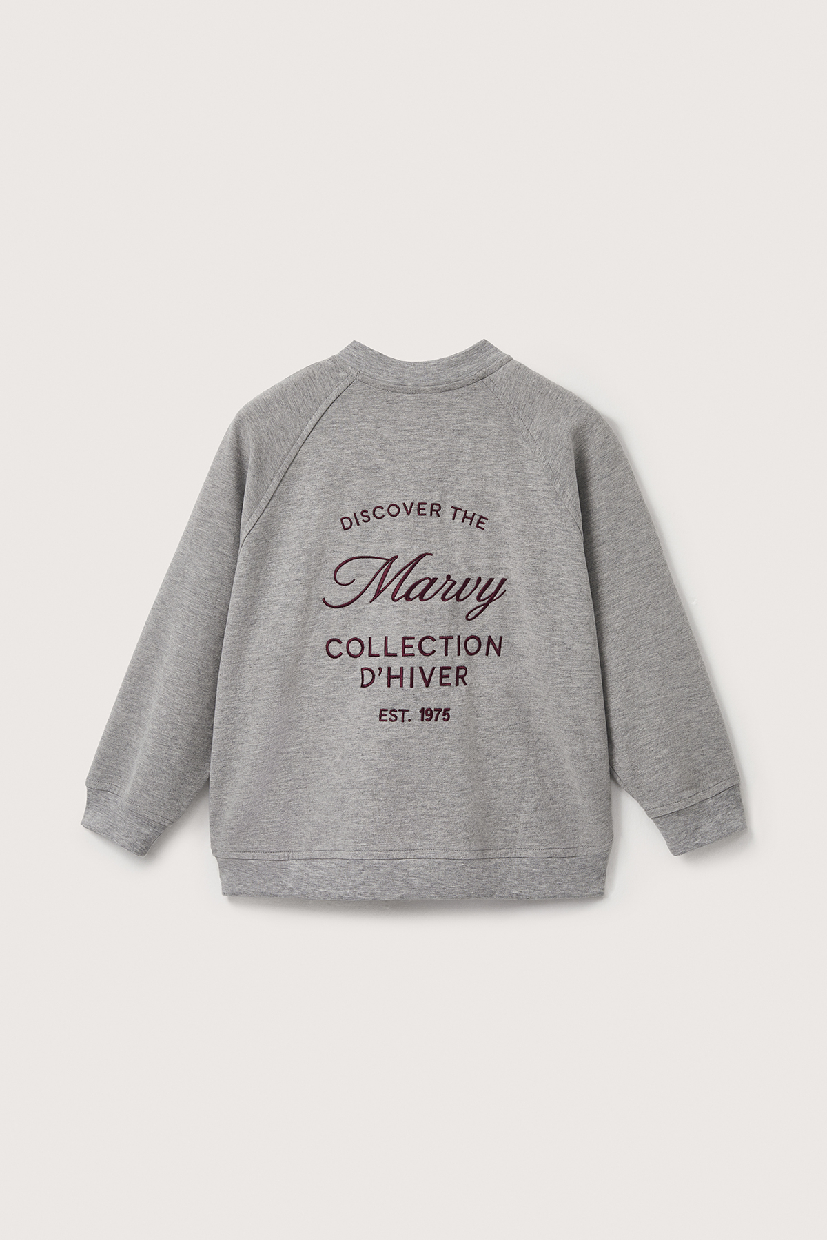 Gelince Haber VerGri melanj rengi reglan kollu önden çıt çıt kapamalı arkası ve önü nakış detaylı cepli likralı pamuk karışımlı kolej hırka.